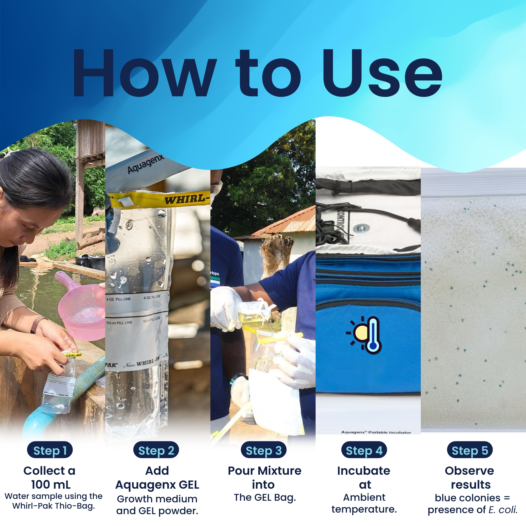 The Aquagenx Pinpoint Water Testing Water Test (E. coli – CFU) is a user-friendly, fast, and reliable tool designed to test for the presence of E. coli colonies in water, making it particularly beneficial for rural communities and areas with limited access to laboratory facilities. This simple, field-based testing solution allows users to assess water quality for potential contamination with harmful bacteria without the need for complex equipment or electricity.
