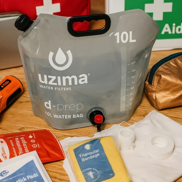 The Uzima D-Prep is an ultra-portable emergency water bag designed for maximum reliability in unpredictable environments. Whether you’re navigating the aftermath of a natural disaster, stocking a go-bag, or preparing for field relief work, the D-Prep offers a compact, rugged solution for water collection, transport, and temporary storage.