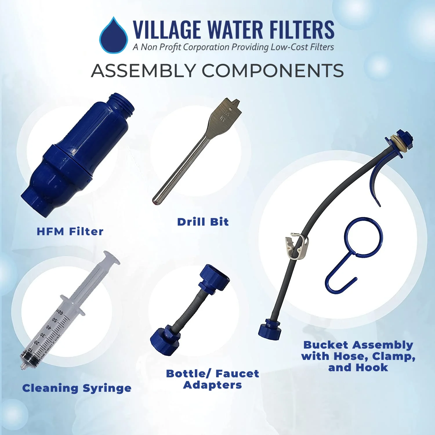 Filter your water fast through the VF100: efficient, portable, and easy-to-use water filter. The VF100 Home Filter is a World Health Organization certified bucket water filter kit that comes with connection accessories which can easily connect to anything. Manufactured by Village Water Filters, this bucket water filter kit is implemented all over the world to reduce healthcare costs for those struggling with waterborne illness. From water bottles, water bags, buckets, barrels, hoses, faucets, and more, this filter is essential for your wellbeing. The VF100 bucket water filter kit not only comes with the filter but a syringe that allows for regular filter maintenance, prolonging the longevity of your water filter. The VF100 requires no chemicals, electricity, or other equipment outside the all-in-one-kit. The VF100 Home Water Filter uses hollow fiber membranes comprised of high-performance pores to deliver up to 1 liter of water in 1 minute. With regular maintenance, the filter can last for years. With its backflushing accessory, you can clean the filter after every use. This filter is currently being used all around the world for disaster relief. In emergency situations, the VF100 can save lives. So whatever adventure you may go on next, or wherever you may find yourself, the VF100 is your trustworthy source of clean water to ensure you get the hydration you need most. At Business Connect, our mission is to provide access to drinking water to those who need it most. Follow us on our journey—we aim to end suffering caused by the water crisis. Contact us with inquiries about this product, water projects, and partnership opportunities.