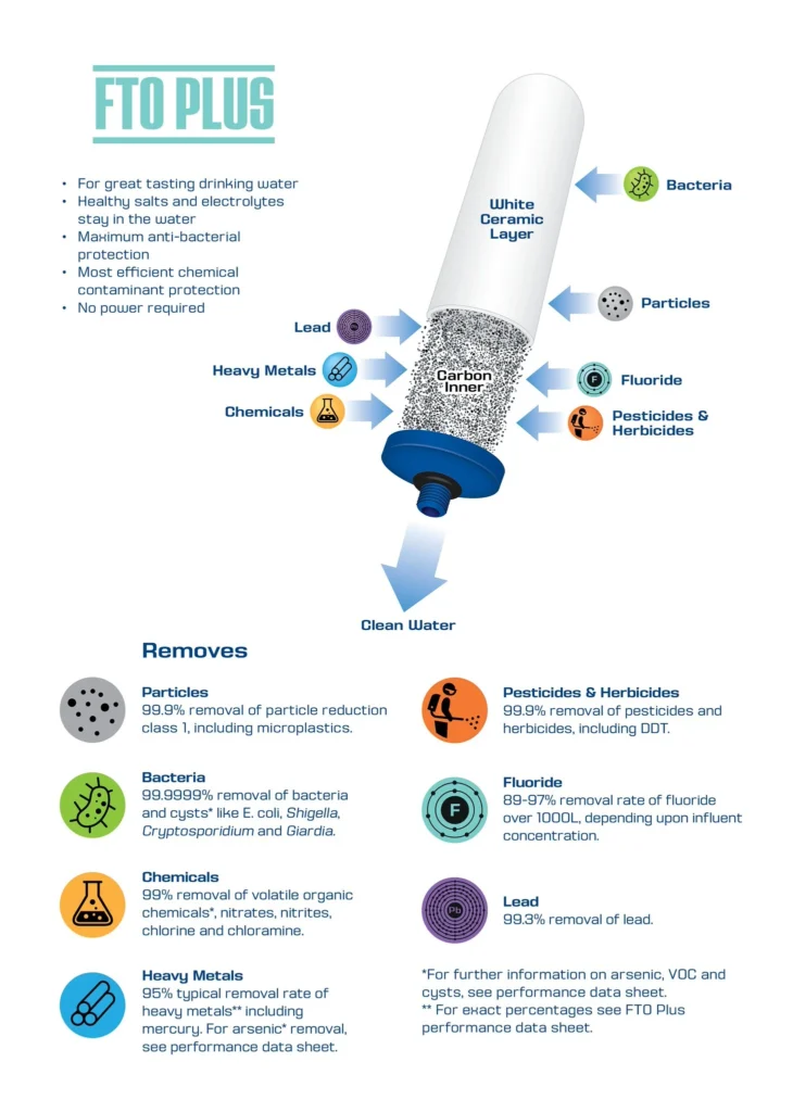 The Coldstream FTO Plus lead water filter is not merely a common carbon block; it represents a revolution in water purification, powered by its proprietary Filtration Technology Optimized (FTO). This advanced element utilizes a unique composition that integrates a highly specialized, engineered ceramic shell with an advanced carbon block core. The genius of the FTO design lies in its mechanism for capturing lead: Adsorption. Its proprietary structure is engineered to provide an incredibly massive surface area coupled with highly specific, chemically active binding sites. This dual action allows the lead water filter to first physically sieve and then chemically react with and permanently trap lead ions and particles, ensuring they are removed from the water stream rather than simply being reduced. This combination delivers exceptional, reliable contaminant removal.